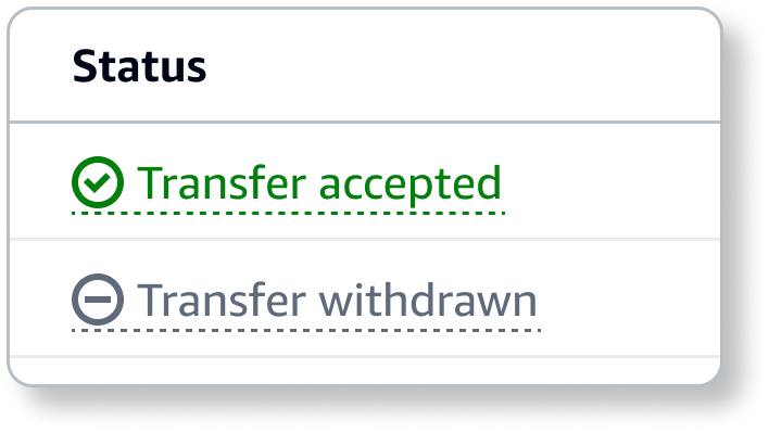 Gambar 1: Transfer status seperti yang ditampilkan di AWS Manajemen Penagihan dan Biaya konsol.
