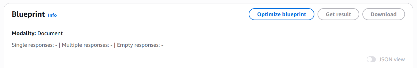 Untuk mengoptimalkan cetak biru Anda, mulai dari halaman detail cetak biru di konsol Amazon Bedrock Data Automation. Perhatikan bahwa ini hanya tersedia untuk modalitas dokumen Anda.