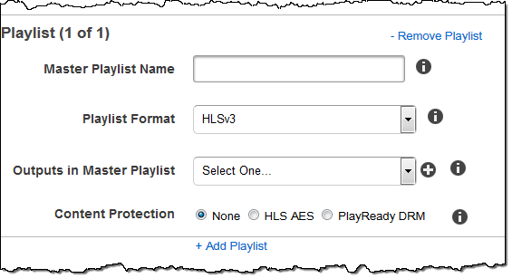 aes-ctrSe usi DRM per una HLSv3playlist, i tuoi output devono avere una playlist principale.