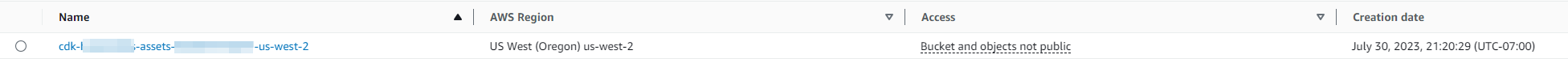 Amazon S3 バケットは、ファイルとデプロイの実行に必要なアクセス許可を付与する IAM ロールを保存するために使用されます。必要なリソースは、ブートストラップ AWS CloudFormation スタックと呼ばれる スタックで定義され、通常は と呼ばれますCDKToolkit。他の AWS CloudFormation スタックと同様に、デプロイされると AWS CloudFormation コンソールに表示されます。