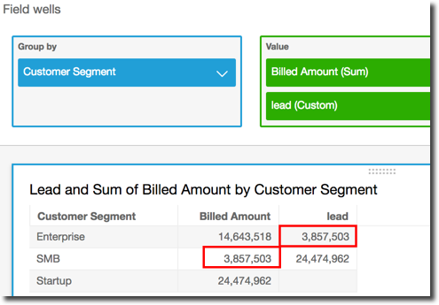 lead( sum({Billed Amount}), [{Customer Segment} ASC], 1 )