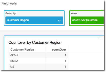 계산 필드 countOver( sum({Billed Amount}), [{Customer Region}, {Customer