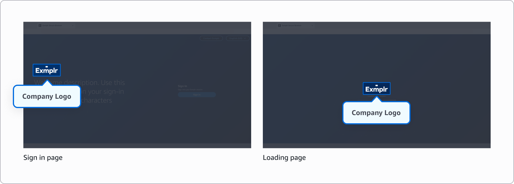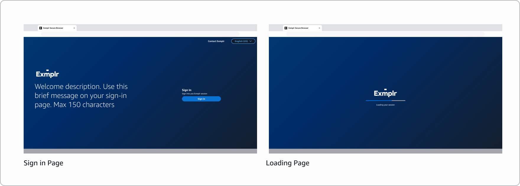 Customize the sign-in and loading experience for your end users by updating the branding elements and text on sign-in and loading pages. You can modify visual elements like logos and wallpapers, edit text elements such as welcome messages and headers, and optionally configure a Terms of Service agreement that users must accept before starting their session.