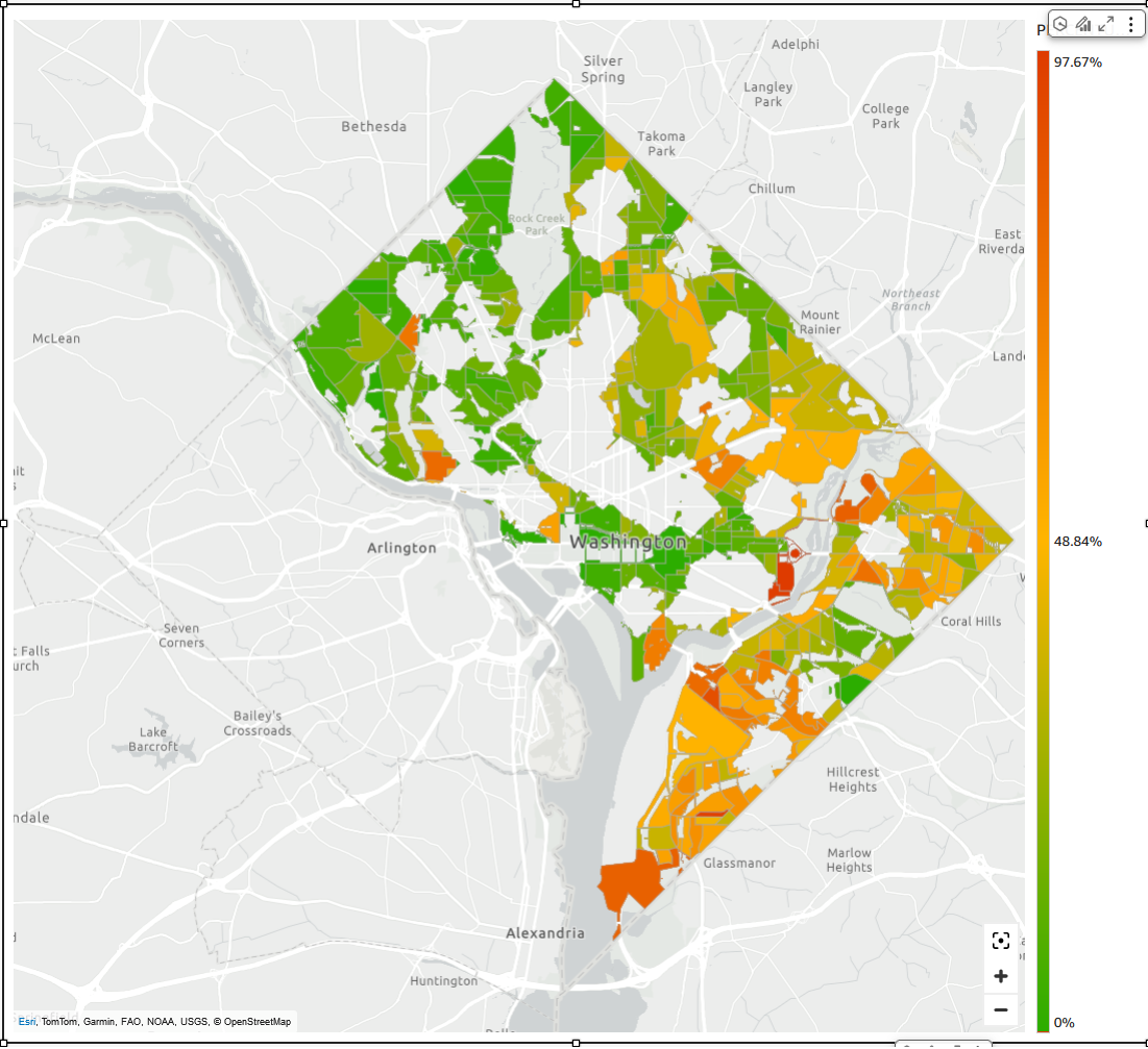 下图显示了 Amazon Quick 中的图层地图视觉效果。