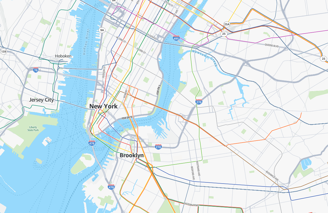 標準地圖樣式提供選項來提供動態視覺化,旨在最佳化導覽和路由規劃。即時流量資料反白顯示擁塞、事件和道路狀況,讓使用者能夠預測延遲並相應地調整其路由。使用卡車或公有運輸等多種旅行模式,此功能可讓使用者為其路由選擇最有效率且內容適當的選項,確保更順暢且更明智的路由體驗。
